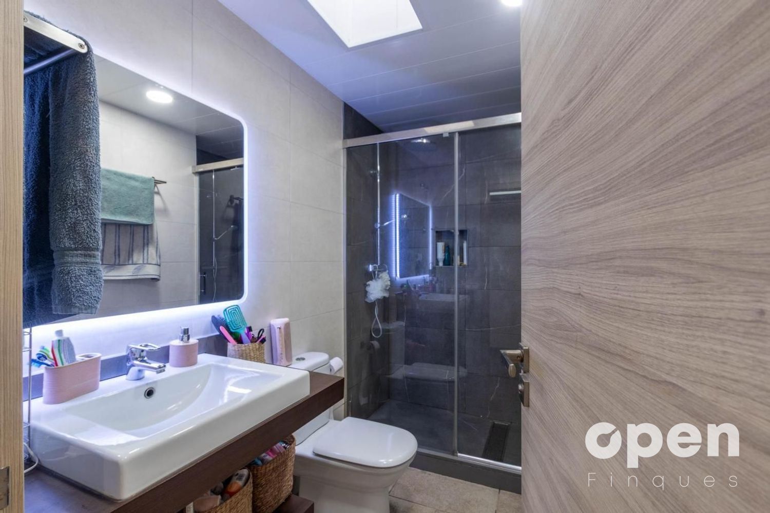 La zona de nit ofereix tres habitacions dobles, una de les quals és la suite principal amb vestidor, i dos grans banys totalment equipats amb dutxes a ras de terra, dissenyats per garantir el màxim confort.