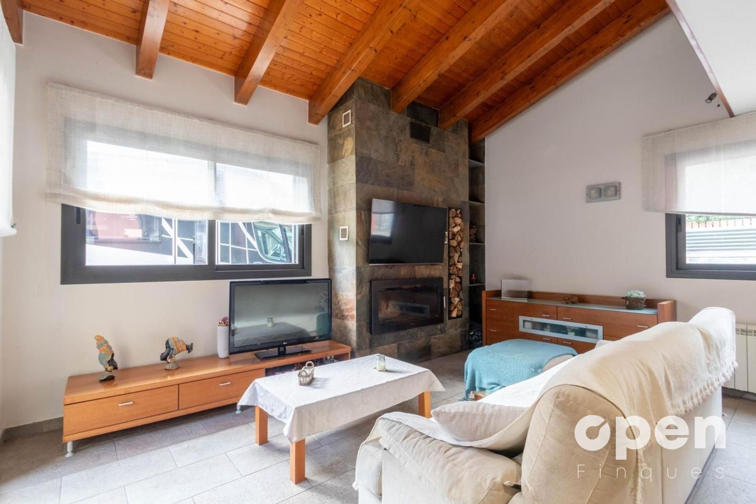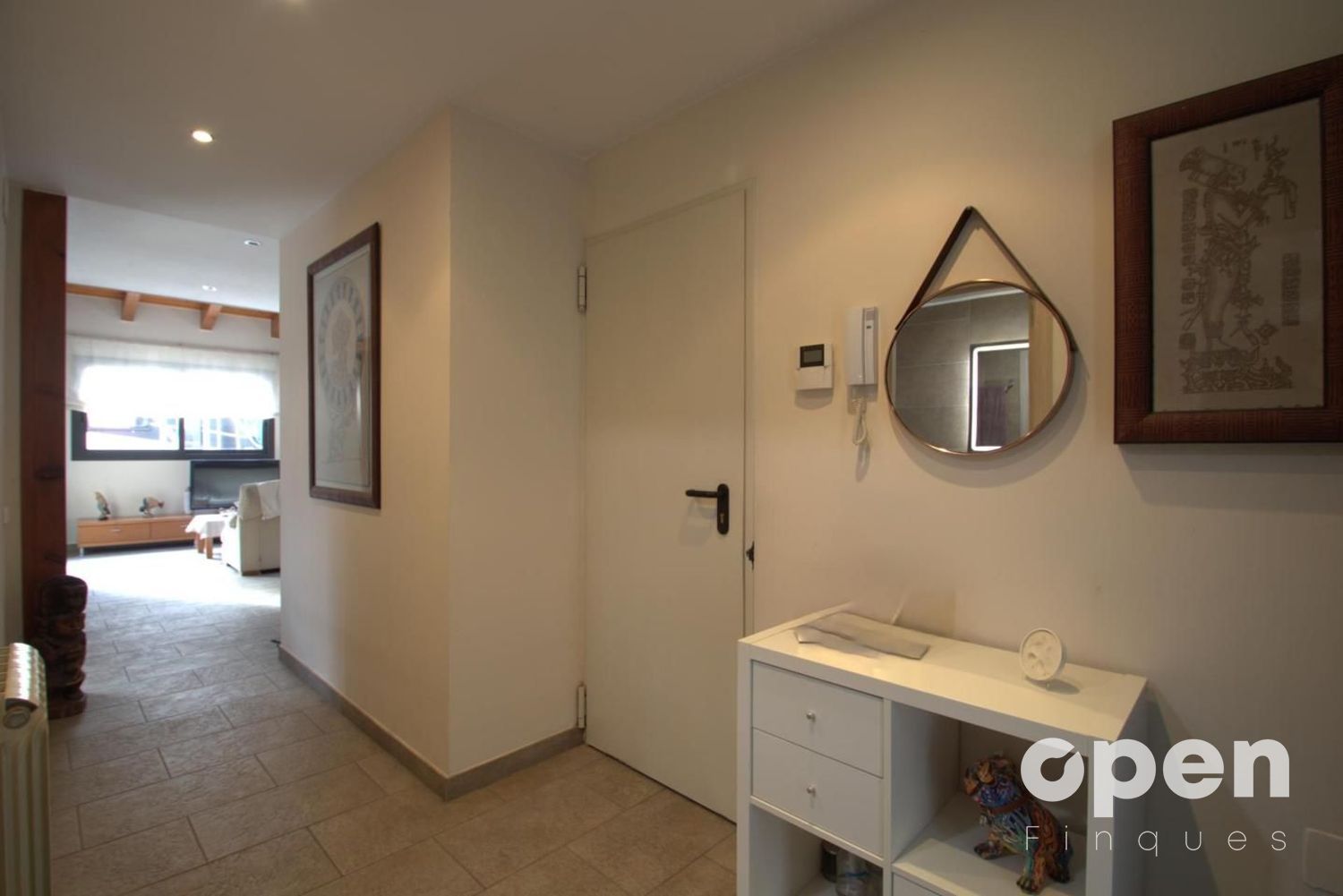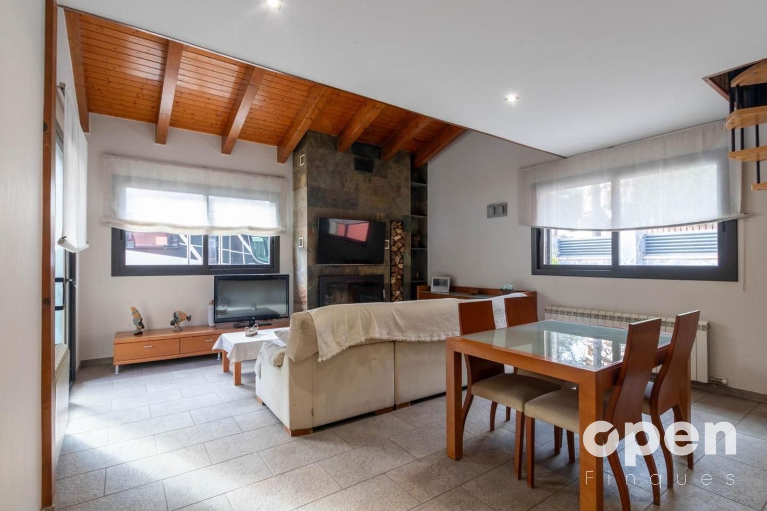 En entrar, et rep un ampli i lluminós saló-menjador orientat al sud amb llar de foc i accés directe al jardí, ideal per gaudir tant d'espais interiors com exteriors durant tot l'any.