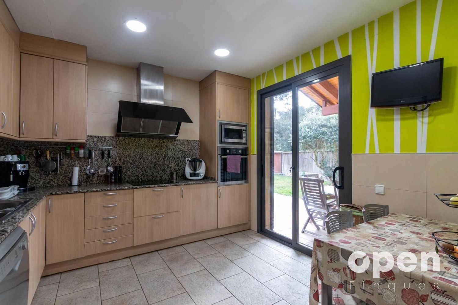 La cuina-menjador, gran, espaiosa i molt pràctica, també s'obre al jardí, convertint-la en el cor de la llar per a la vida quotidiana i les reunions familiars.