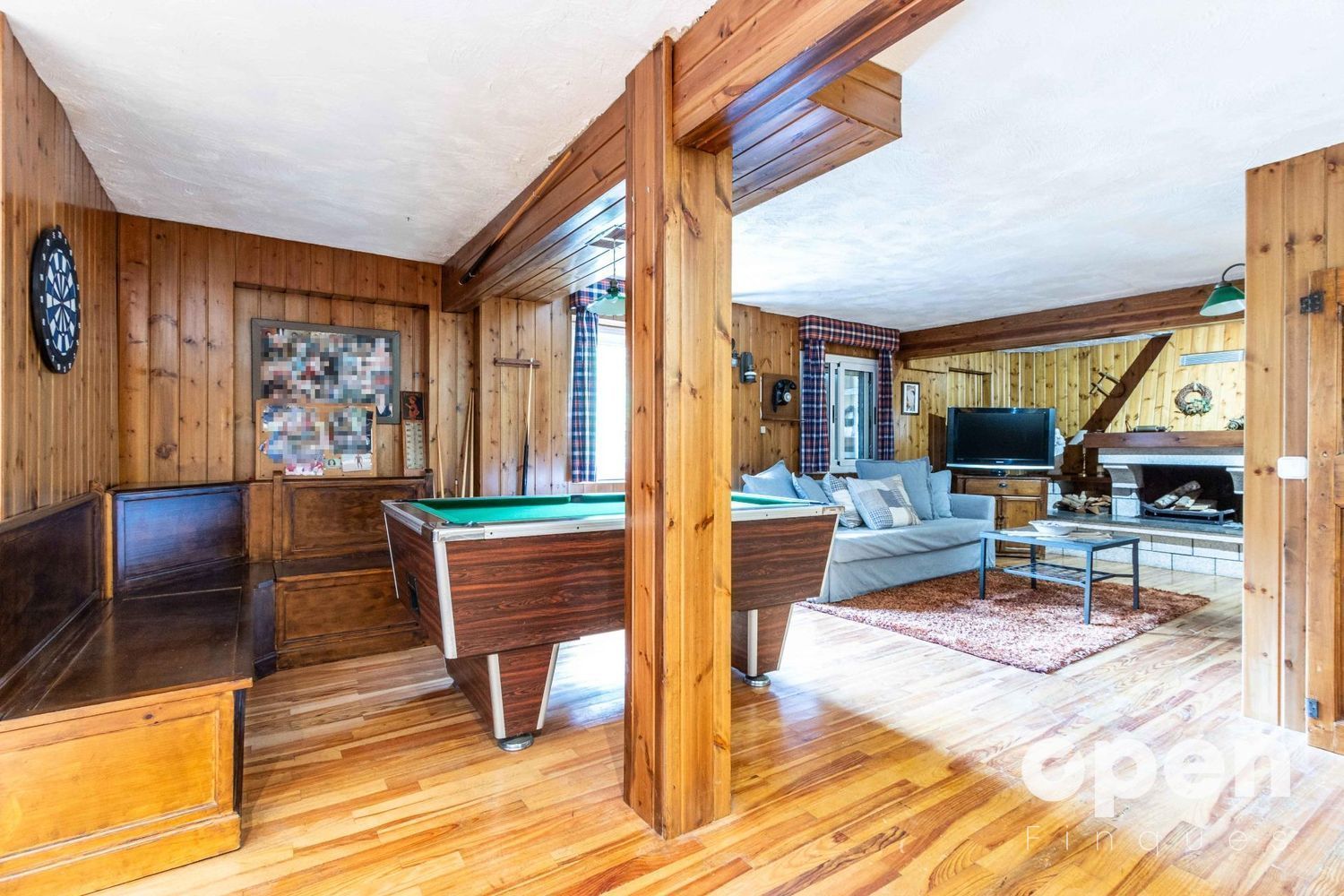 Disfruta del confort que ofrecen tres baños y múltiples espacios diseñados para el entretenimiento: ¡una bodega encantadora con chimenea, sala de billar y una relajante sauna!