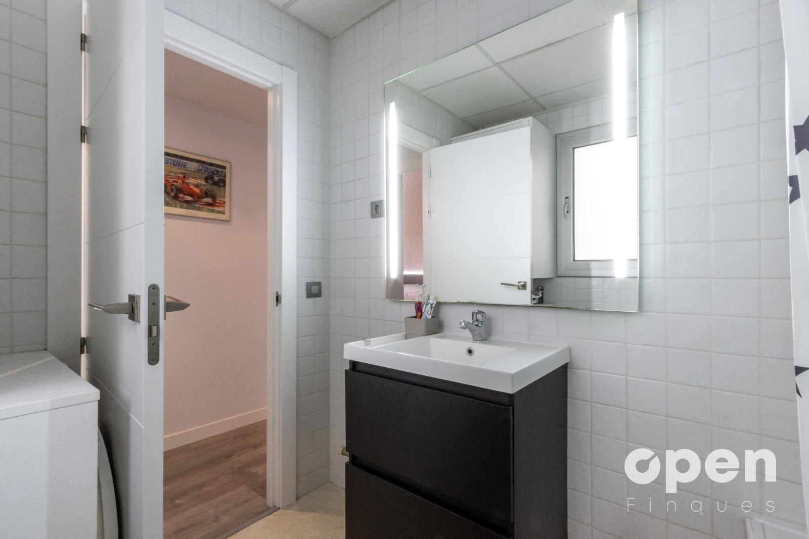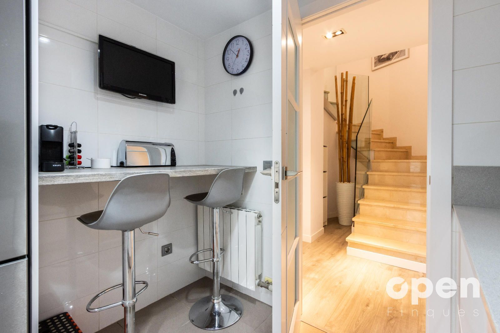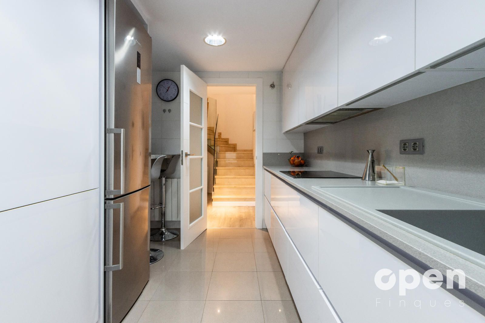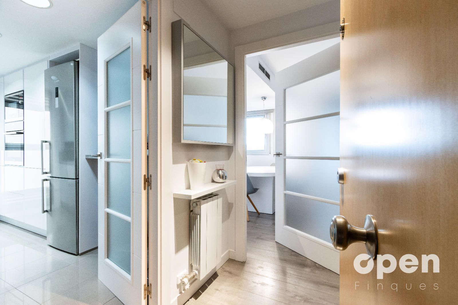 • Cocina exterior de 9 m², totalmente reformada, con muebles lacados en blanco.
